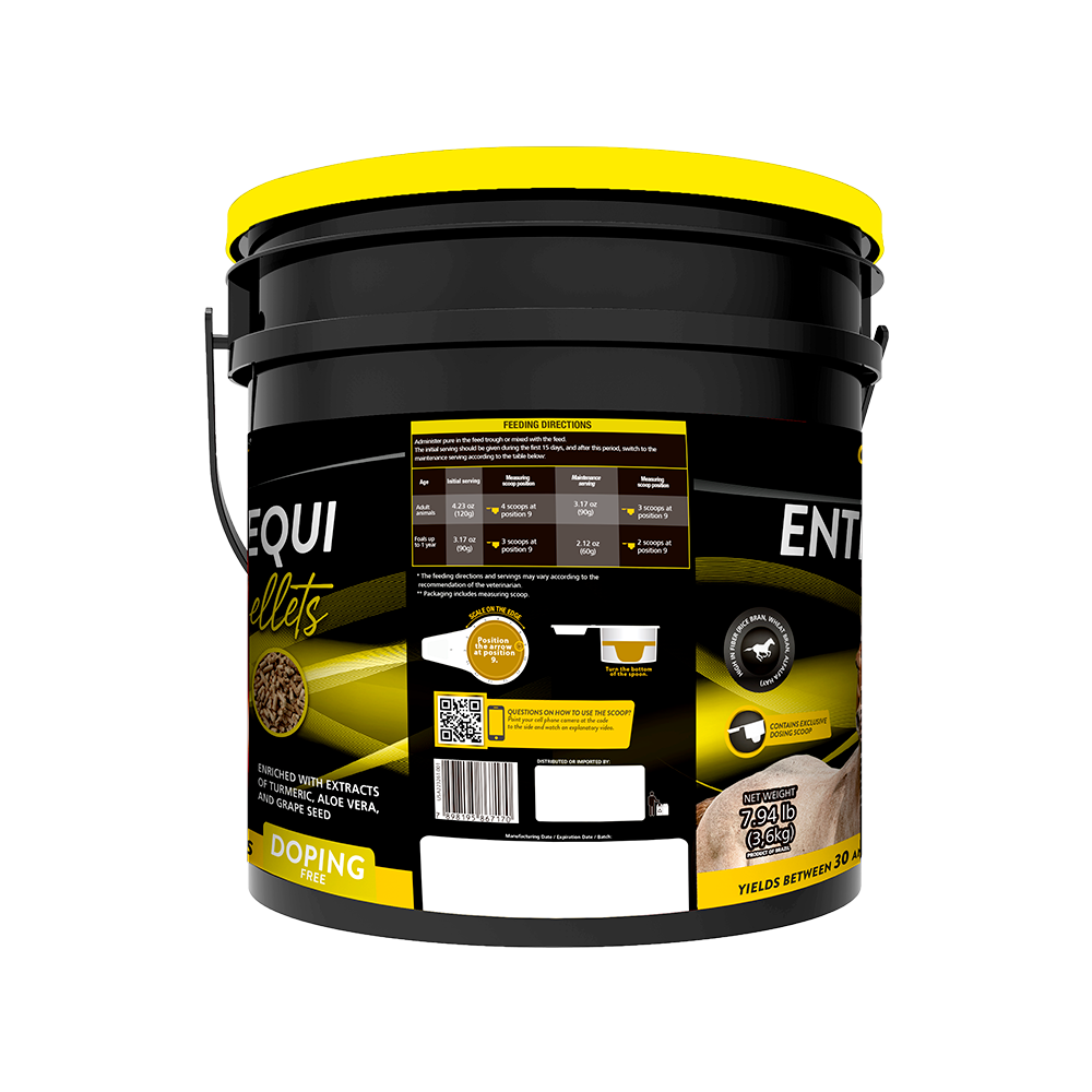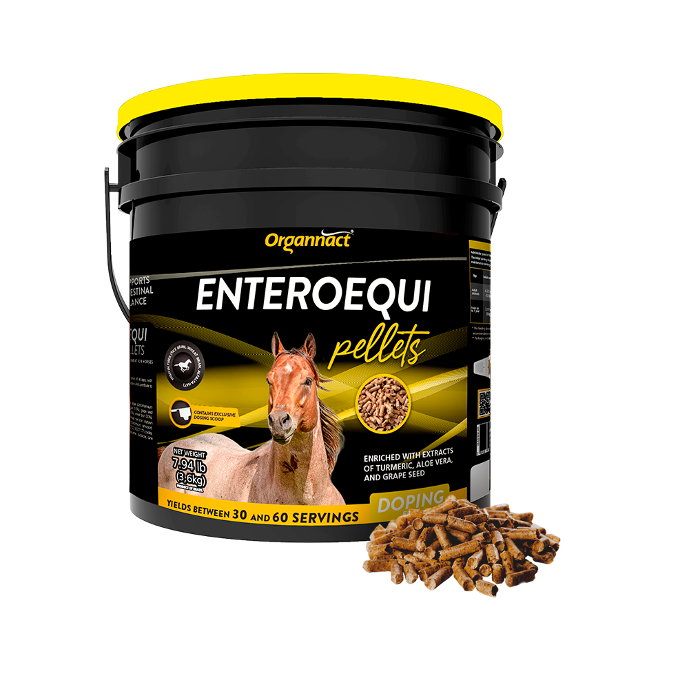 Enteroequi Pellets is a palatable gastrointestinal support supplement for horses of all ages that combines selected ingredients for digestive balance and maintenance. Glutamine, threonine and beta-glucans help maintain intestinal integrity, while turmeric, aloe vera and grape seed provide antioxidant properties. The formula also includes fibers, calcified algae flour, zeolite, and a postbiotic component to help stabilize the gut environment. Its vanilla-flavored pellet form ensures palatability and ease of use, making Enteroequi Pellets suitable for horses facing digestive challenges, recovering from procedures, under stress or coping with major demands.